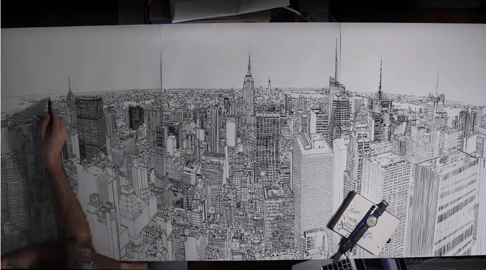 drawing skyline york drawings vale patrick illustration architecture nyc scale colossus detailed sketch sketches subtraction building pen state timelapse very
